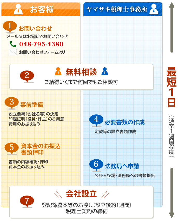 会社設立に悩んでいた竹岡社長は、ホームページからお問い合わせをいただき、弊社のサポートで無事開業されました。