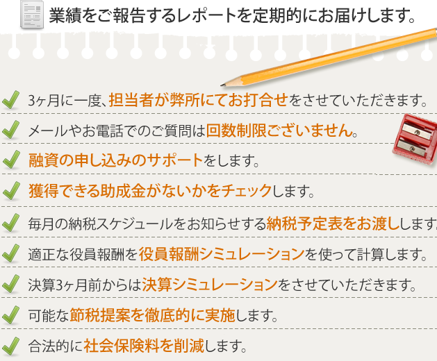 ヤマザキ税理士事務所は、とにかくお客様が売り上げを上げることに集中できる環境を作ります。